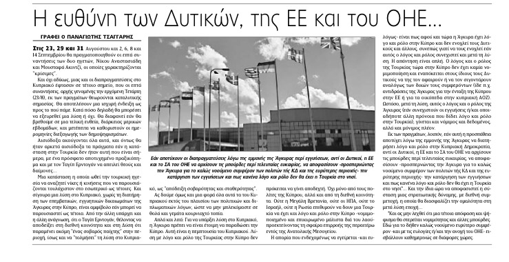 Εάν αποτύχουν οι διαπραγματεύσεις λόγω της εμμονής της Άγκυρας περί Εγγυήσεων, αντί οι Δυτικοί, η ΕΕ και το ΣΑ του ΟΗΕ να αρχίσουν τις μπούρδες περί τελευταίας ευκαιρίας, να αποφασίσουν -προσπερνώντας την Άγκυρα για το καλώς νοούμενο συμφέρον των πολιτών της ΚΔ και της ευρύτερης περιοχής- την κατάργηση των Εγγυήσεων και πως κανένα λόγο και ρόλο δεν θα έχει η Τουρκία στο νησί…