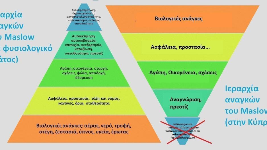 Ο Maslow όμως προφανώς δεν είχε υπόψη του την κυπριακή κοινωνία και το κυπριακό κράτος. Είχε υπόψη του, μάλλον, άλλες κοινωνίες και φυσιολογικά κράτη.